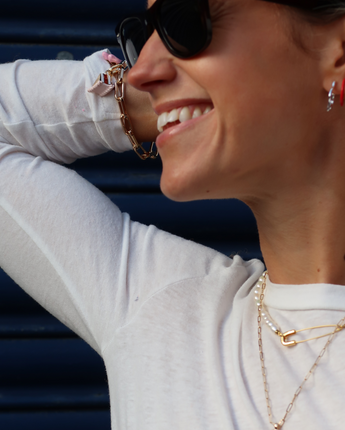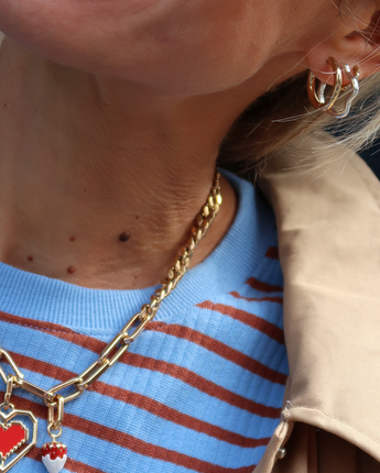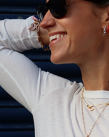Our iconic midi hoops with a twist, or should we say bend? Shaped like little clouds, these hoops are the newest addition to our earring family. Not only do they look fab alone, you can also add your charms to them!