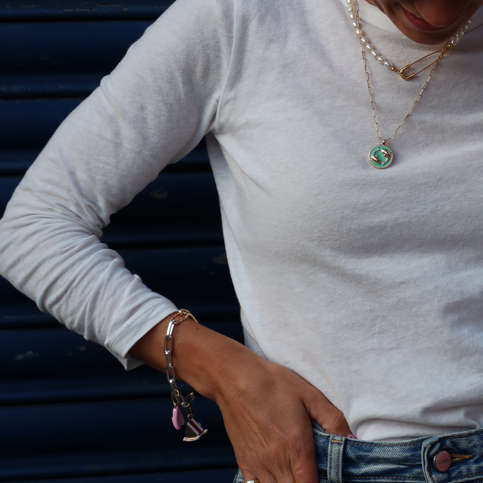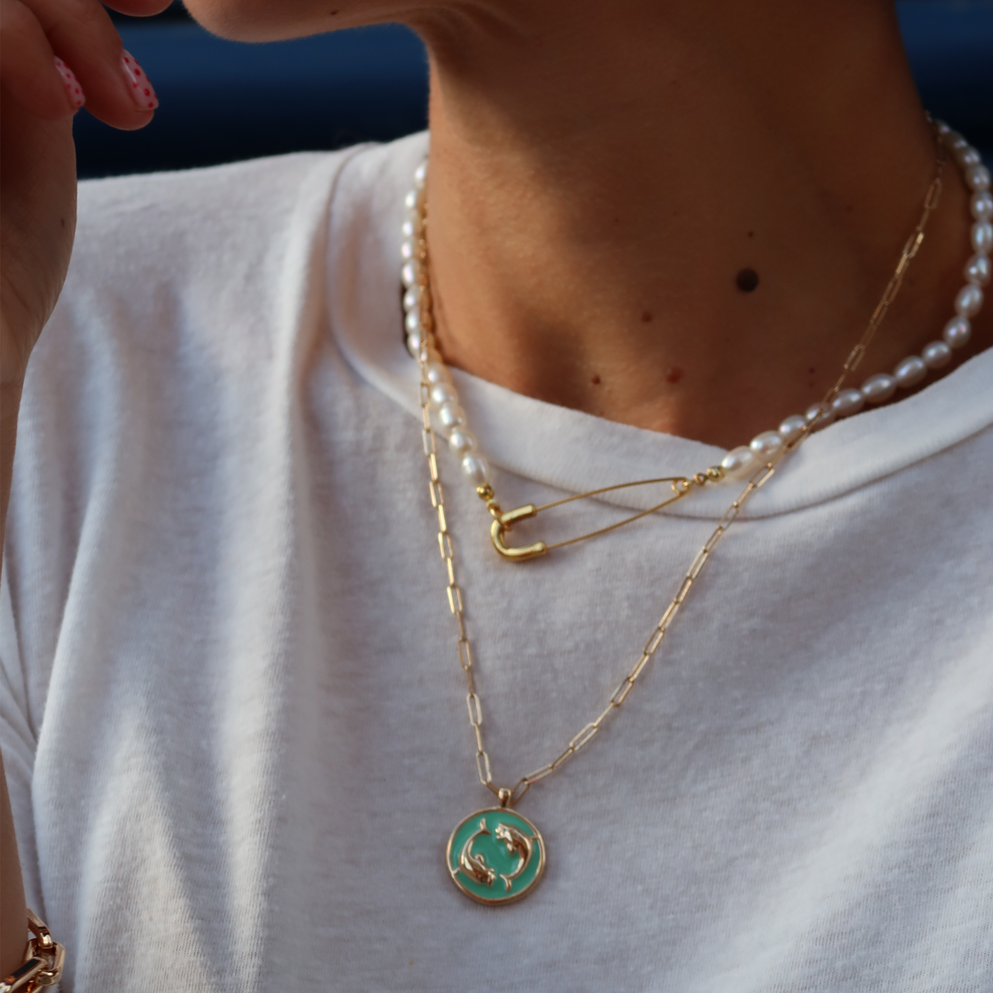Swimming, showering or washing in jewellery can cause your pieces to erode and fade over time. Gold plating can react with chlorine, salt and fresh water, so to keep shining on, take your pieces off.New arrivals