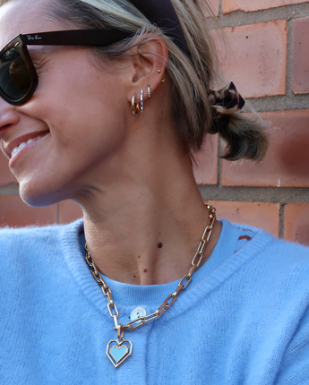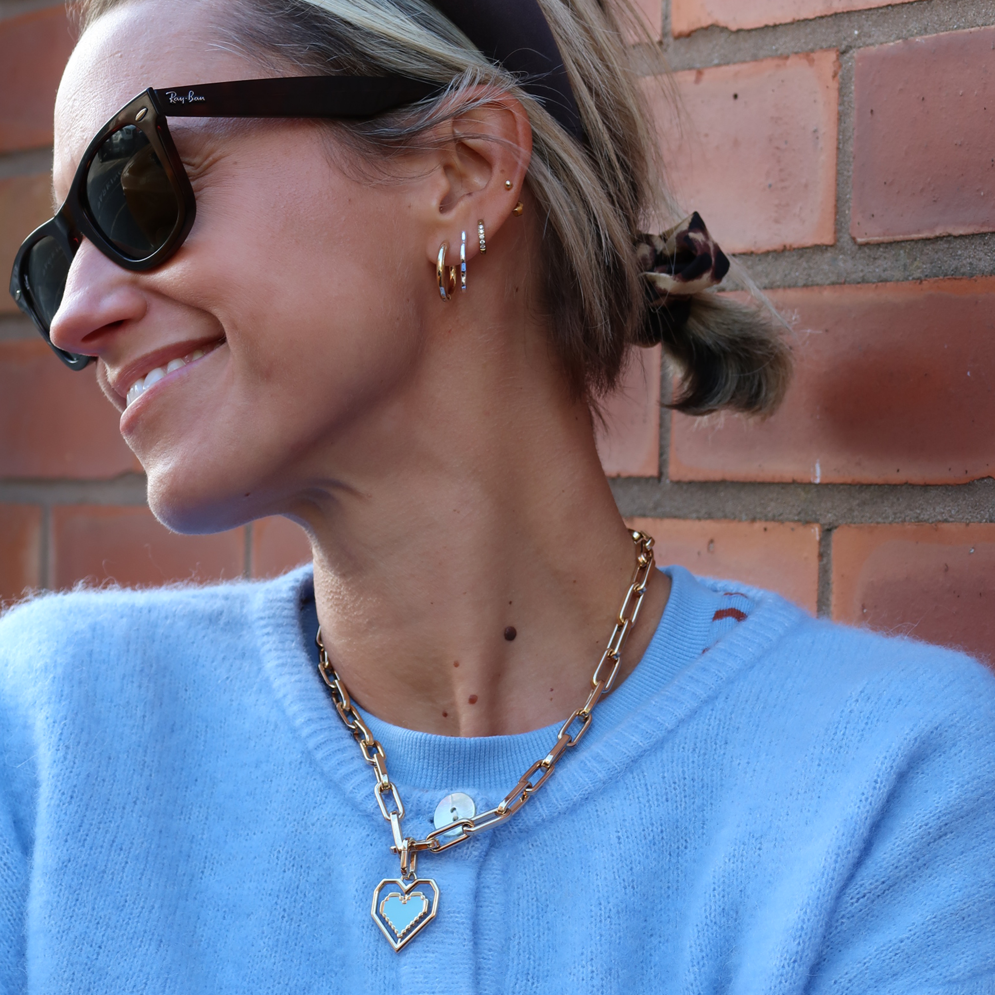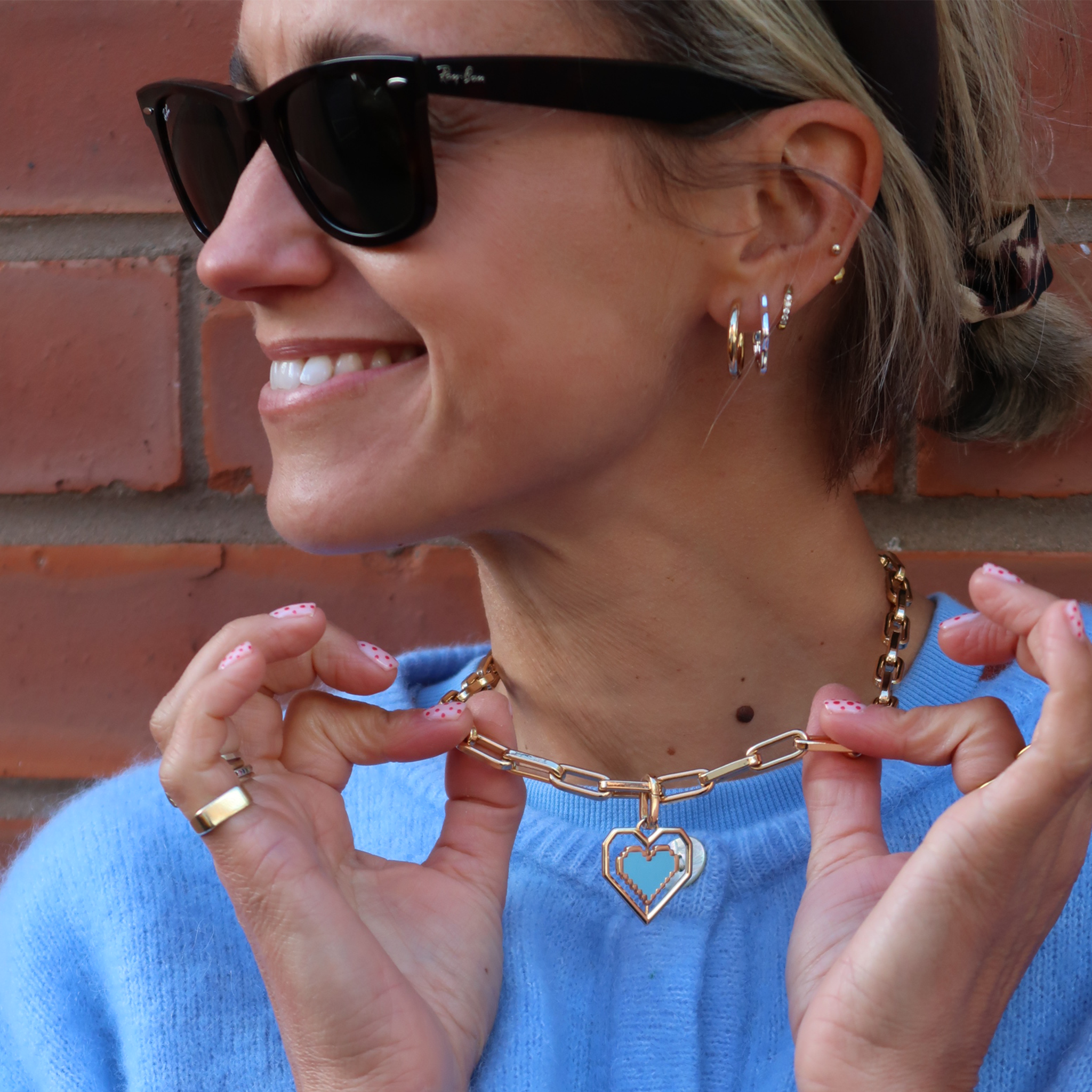 meet the pixelated spinning heart necklace stack, now in a blue hue - the perfect addition for your big day.