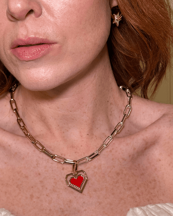 Heart charm: Enamel & 18ct gold-plated triple-dipped brass