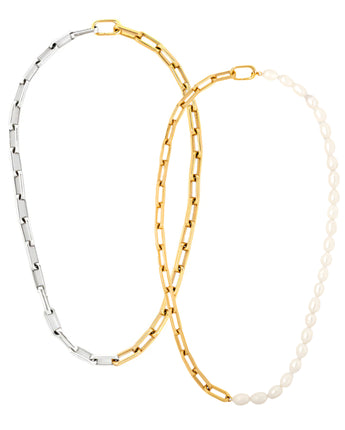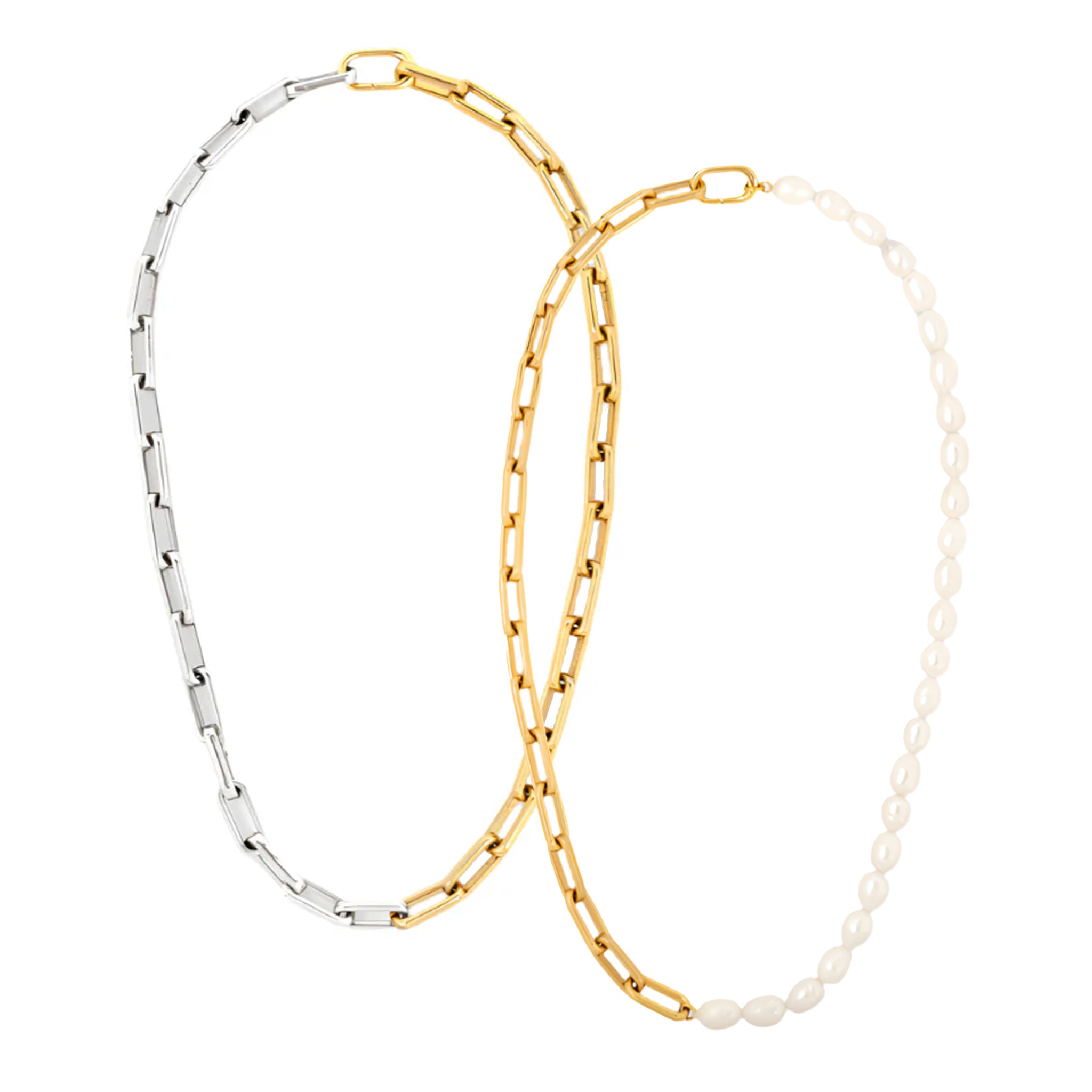 Craving extra length? Combine our Half Pearl Mega and Mixed Metal Mega necklaces to craft one stunning longer chain, or rock them separately for versatile styling.