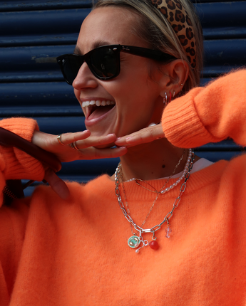 Charlotte’s top three charms come together on our iconic silver mega necklace, creating a playful stack that’s impossible to resist. Mix, match, and show off your unique style with this sparkling combination. Plus, save up to 20% when you buy stacks, because layering never looked so good!
