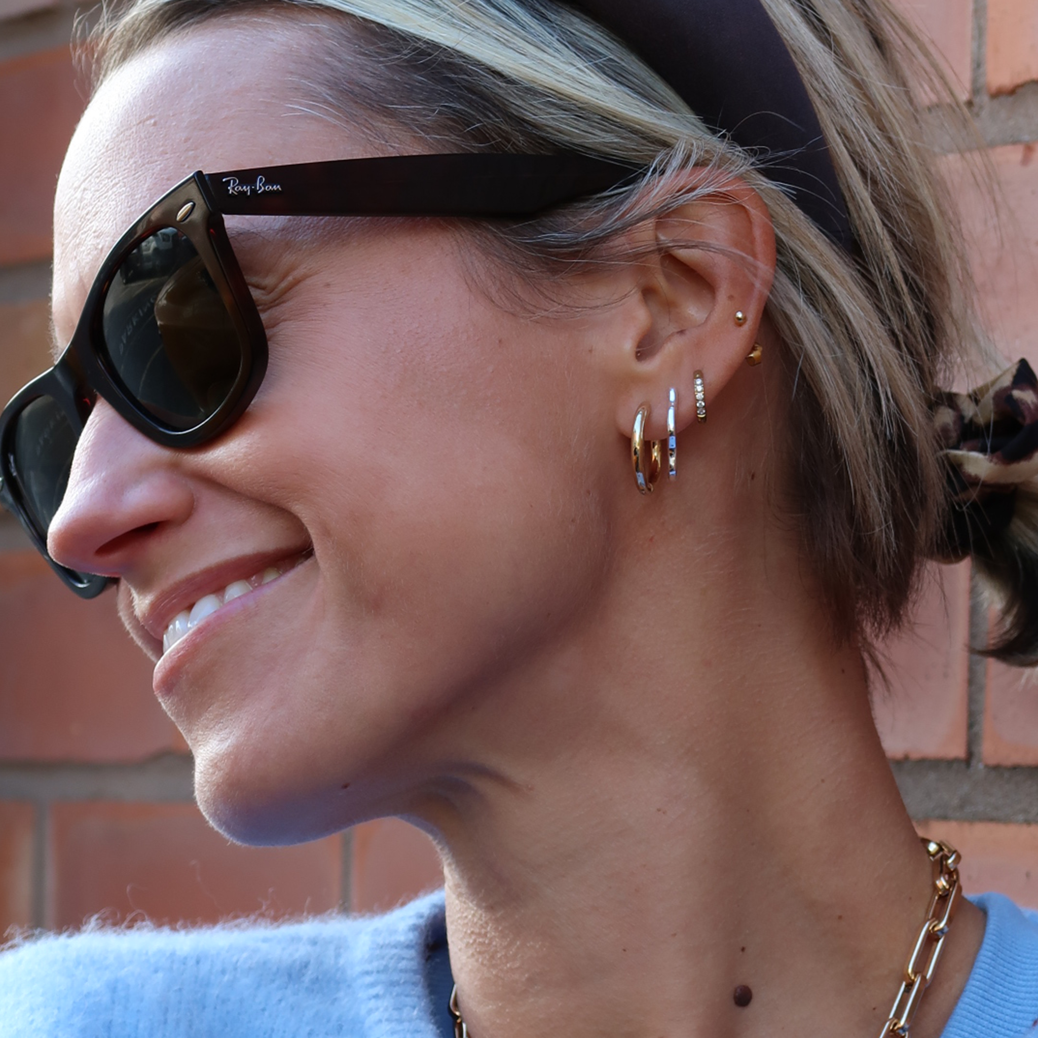Sure, gold hoops are a classic. But this midi pair can evolve into any look – from funky and colourful to elegant and refined – depending on how you dress them up.