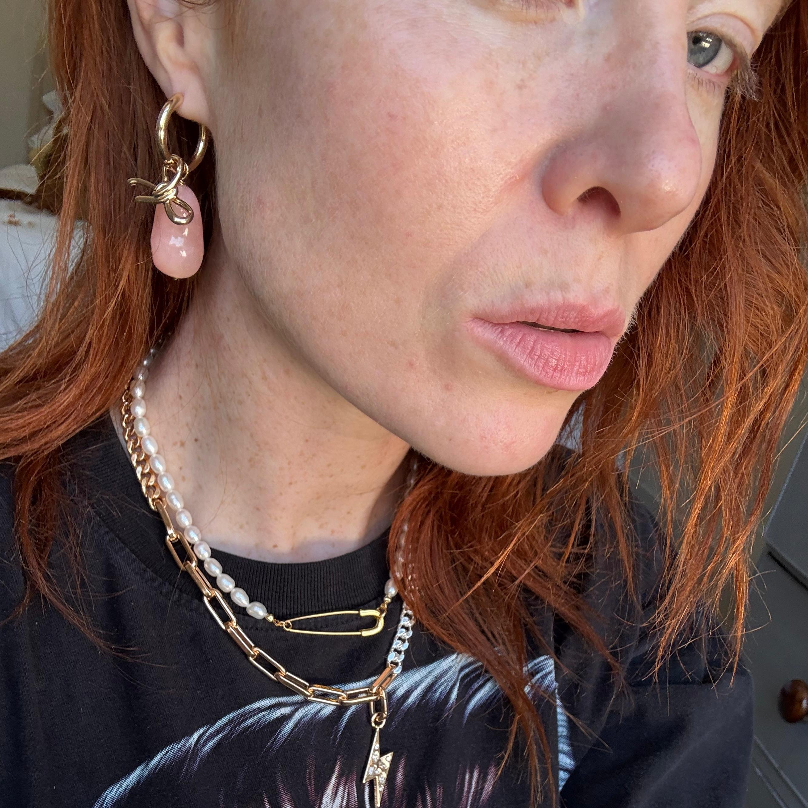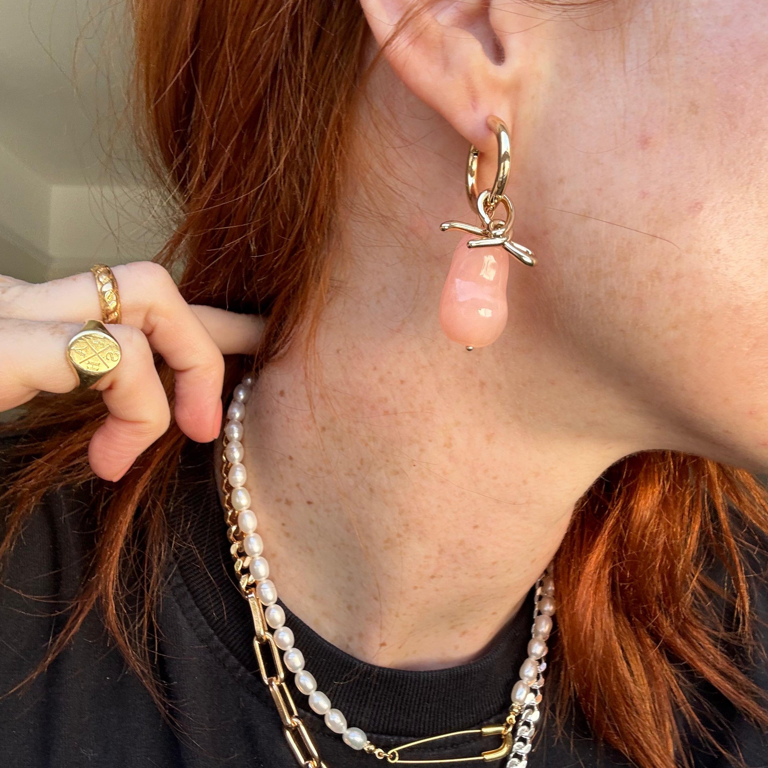 resin candy baroque pearl & bow earring stack